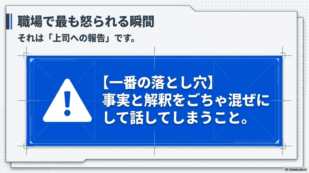 報告の場面で、一番やってはいけない最大の落とし穴があります。