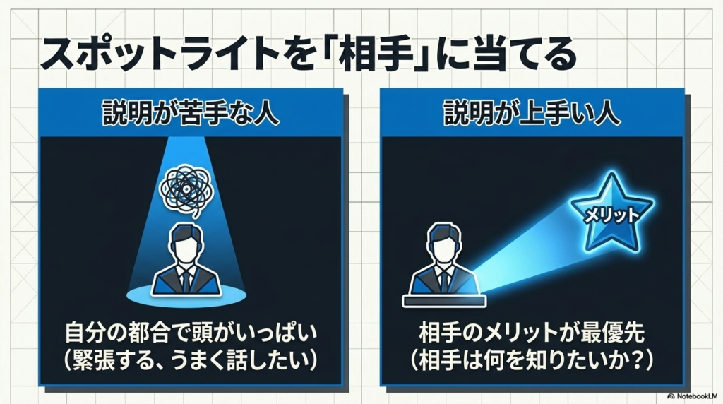 一方、説明が上手い人は、スポットライトを「相手」に当てています。
